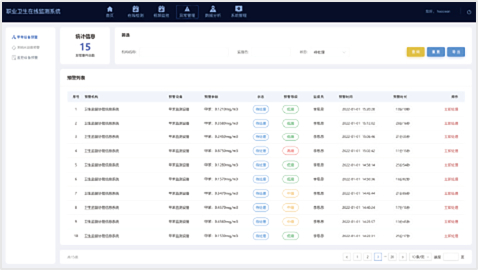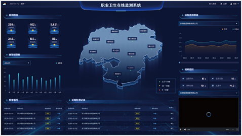实时在线监测各类危害因素的数据。实现职业危害因素的预警与数据分析,降低职业危害监管风险,及时减少职业病危害事件的发生,为监管机关开展职业危害监管工作提供决策依据。